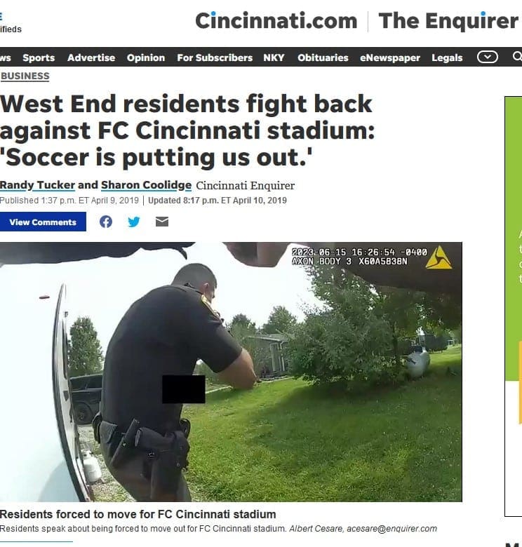 A full year had not even passed since FC Cincinnati’s housing promise, when the Cincinnati Enquirer found out that at least 20 people were, in fact, being displaced by the new stadium. Many more would follow, and the above two examples are ones of many that I could write about.