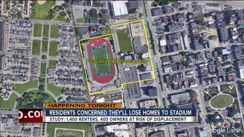 “(FC Cincinnati) recently asked council to expand the site north to include buildings at 421 Wade Street, 423 Wade Street and the Jehovah’s Witnesses Kingdom Hall that sits next to those properties on John Street after the team bought those properties and another at 1559 Central Avenue. As a result of the sale, building residents have or will have to move out” – Cincinnati Enquirer, 04/22/19